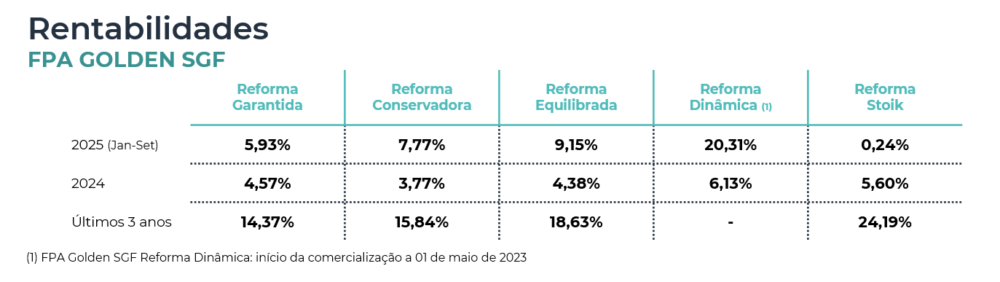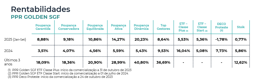 Rentabilidades até setembro 2025